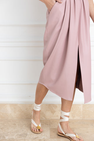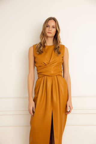The Virginia Vegan Leather Dress in Blush: Artisanal Blush Midi Dress for Women