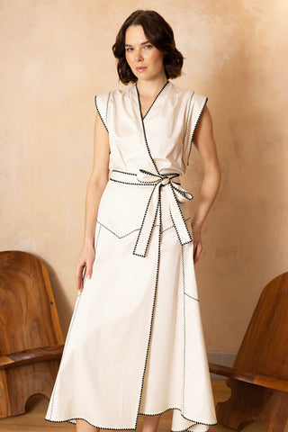 The Ananas Dress Off-White Cotton Embroidered: Artisanal Off-White Maxi Dress