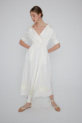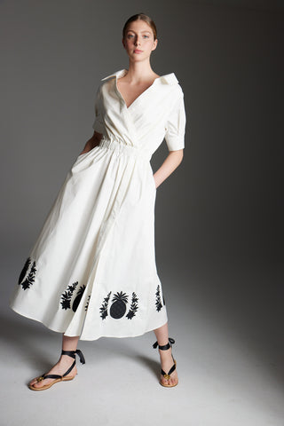 The Ananas Dress Off-White Cotton Embroidered: Artisanal Off-White Maxi Dress