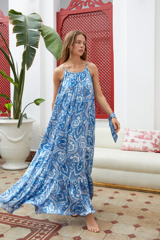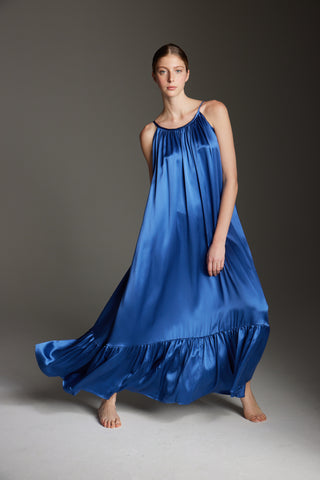 The Daria Maxi Gown in Royal Blue Silk: Artisanal Maxi Dress for Women